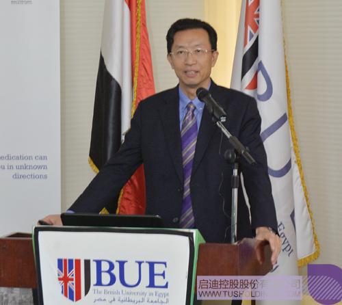 首先,BUE大學董事會主席Mohamed Farid Khamis先生對啟迪之星(開羅)的最終落地表示祝賀,并在致辭中用兩個“最”來形容大學科技園的意義以及與啟迪的合作:建設和運營大學科技園及孵化器是當下BUE大學對埃及社會進步和經濟發展能做出的最大貢獻;中國的啟迪控股是BUE建設運營大學科技園和孵化器最理想的合作伙伴。Mr. Farid Khamis Khamis表示,在啟迪的支持和幫助下,BUE大學有信心將大學科技園建設運營為埃及乃至北非最成功、最有影響力的科技園。