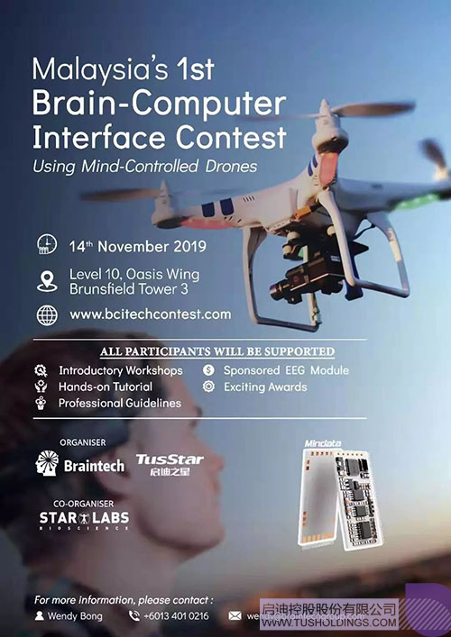 Braintech向與會(huì)的馬來(lái)西亞各高校大學(xué)生介紹:開幕儀式后,一系列的預(yù)熱與培訓(xùn)活動(dòng)也將陸續(xù)登陸:推介會(huì)、講座、論壇、創(chuàng)意工坊等活動(dòng),讓參賽者更好地迎接比賽。比賽中,參與者需要用腦波控制無(wú)人機(jī)飛行10碼,并對(duì)儀器進(jìn)行編程優(yōu)化,比賽中的優(yōu)勝者:冠軍將獲得3000令吉,亞軍2000令吉,季軍1000令吉,并設(shè)有5個(gè)鼓勵(lì)獎(jiǎng)(500令吉)。