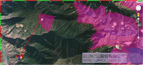 圖中右邊紅色區(qū)域?yàn)樯礁叱^(guò)4200米的區(qū)域,為避免撞山不能靠近此區(qū)域。
