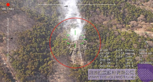 沈陽(yáng)棋盤山火場(chǎng),3V復(fù)合翼無(wú)人機(jī)搭載三軸30倍光電吊艙巡查到一個(gè)火點(diǎn)已經(jīng)威脅到高壓線的安全