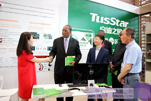 在參觀展區之前,卡布迪外長在貴賓室與啟迪之星團隊親切會談。團隊向卡布迪外長詳細介紹了清華科技園、啟迪控股和啟迪之星的發展歷程以及啟迪之星打造的全球創新孵化網絡情況,并分享了啟迪之星在埃及開羅創建非洲第一個孵化基地的案例。卡布迪外長對啟迪之星的孵化模式和所取得的成就表示極大興趣和贊賞,并代表坦桑尼亞達累斯薩拉姆大學向啟迪之星發出誠摯的合作邀請,希望啟迪之星和達累斯薩拉姆大學盡早啟動合作交流,歡迎啟迪之星的創新高鐵駛入坦桑尼亞。