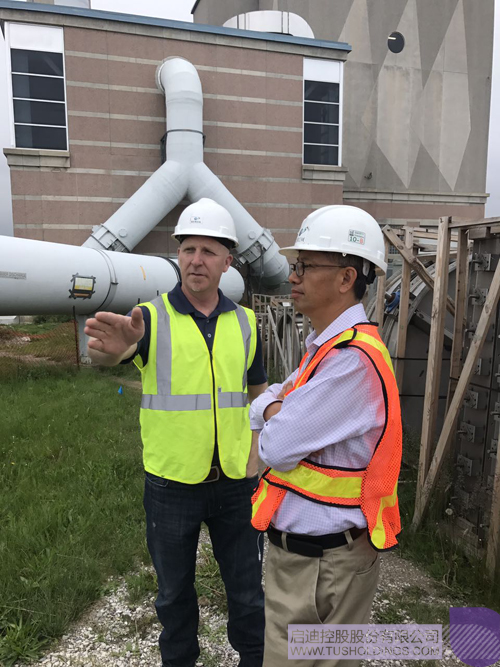 ▲ BIOREM首席執(zhí)行官Derek Webb向啟迪控股高級(jí)副總裁、啟迪水務(wù)集團(tuán)董事長(zhǎng)趙清(右)介紹項(xiàng)目進(jìn)展