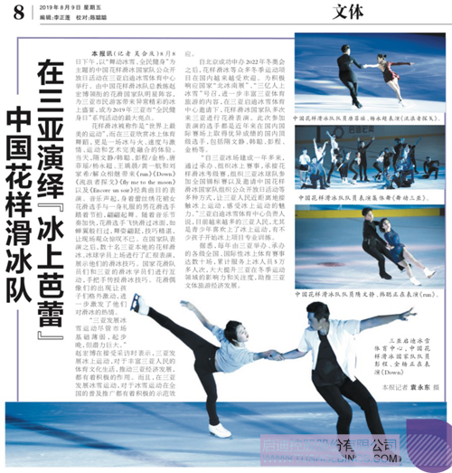8月8日下午,以“舞動冰雪、全民健身”為主題的中國花樣滑冰國家隊公眾開放日活動在三亞啟迪冰雪體育中心舉行。由中國花樣滑冰隊總教練趙宏博領銜的花滑國家隊明星陣容,為三亞市民游客帶來異常精彩的冰上盛宴,成為2019年三亞市“全民健身日”系列活動的最大亮點。