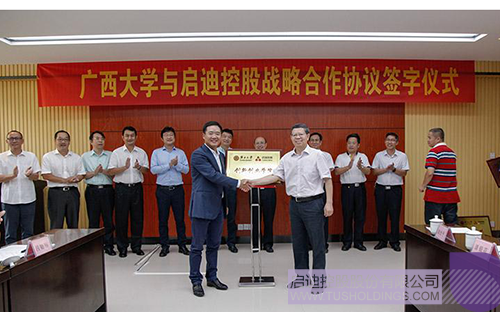 2016年8月31日,王濟武董事長率訪問團前往廣西大學,與廣西教育廳、廣西大學主要領導會談,并簽署戰略合作協議。該合作項目是啟迪控股與廣西政府簽署全面戰略協議后的首個落地項目。王濟武董事長說,啟迪與廣西大學合作的啟迪創新創業學院,將充分發揮啟迪“雙創”教育的資源優勢,成為該?!半p創”課程的授課中心,并逐步發展成區域經濟發展的驅動中心,最終壯大成面向全國的“雙創”學院。同時,雙方還可在科技成果轉化、合作共辦研究院所和研究中心等方面展開深度合作。