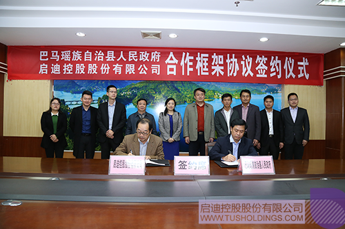 1月8日中午,啟迪控股訪問團一行到達巴馬,與廣西河池市市委常委、副市長陸海生,廣西河池市市委常委、巴馬縣委書記王軍,巴馬縣縣長藍海洲等進行了會談。下午,訪問團在藍海洲縣長及相關領導的陪同下,考察了巴馬人民醫院、巴馬國際旅游學校、巴馬長壽養生國際旅游區集散中心、巴馬天然長壽礦泉水廠以及巴馬啟迪大健康產業示范基地規劃地塊。隨后,袁桅總裁一行與王軍書記進行會談,并見證雙方簽署大健康產業合作框架協議。