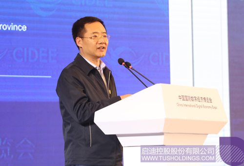 王濟武董事長應邀出席2019中國國際數字經濟博覽會開幕式,并在當天下午舉辦的智能雄安高峰論壇上發表主旨演講,為雄安新區智能城市創新聯合會揭牌。