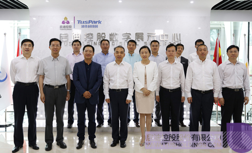 ▲ 四川省委常委、成都市委書記范銳平(前排左三)一行參觀啟迪控股數字展廳