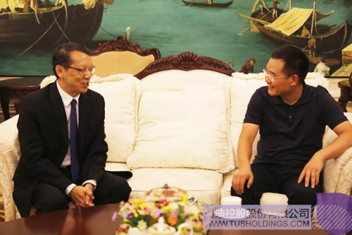 啟迪控股董事長王濟武(右)與泰國駐華大使畢力亞·針蓬座談