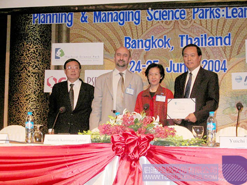2004年,時任啟迪控股董事長梅萌先生(右一)出席在曼谷舉行的IASP亞太分會大會
